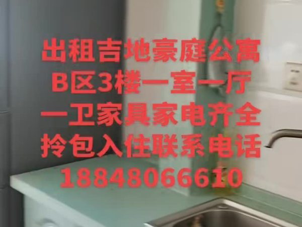 出租吉地豪庭公寓B去4-3楼一室一厅一卫家具家电齐全有冰箱洗衣机热水器吸油烟机床衣柜能洗澡洗衣服能做饭联系电话188****6610微信同步